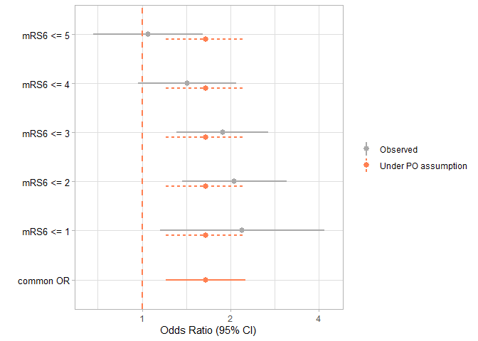 #> | mRS6 <= 2 | 2.050 | 1.453 | 2.892 | Observed |