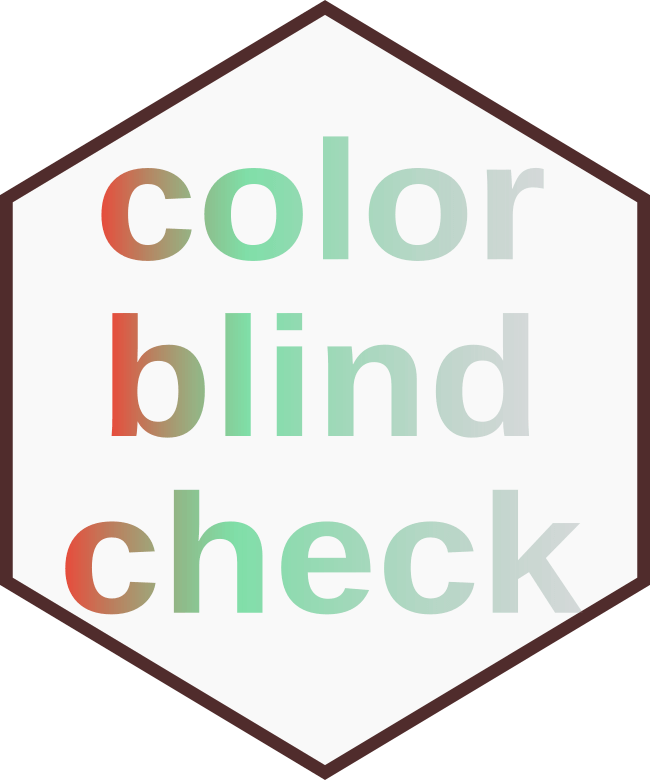 deuteranopia, protanopia, and tritanopia.You can install the released version of colorblindcheck from CRAN with: