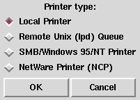 Atención: Si necesitas usar un nombre de usuario y clave para una cola SMB (LAN Manager) o NCP (NetWare), serán guardadas sin encriptar en un archivo en tu máquina local. Por lo tanto, es posible que otra persona acceda a esos nombre y clave. Por lo tanto, es recomendable que el nombre de usuario y la clave para usar la impresora sean diferentes que los de las cuentas del sistema Red Hat Linux local, de manera que el único compromiso en materia de seguridad pueda producirse en un uso no autorizado de la impresora. Si estás compartiendo ficheros de un servidor SMB, se recomienda también que estas unidades compartidas tengan una clave de acceso diferente a la de la cola de impresión.