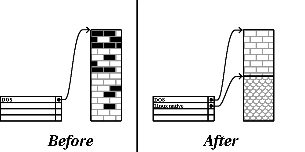 Después de crear una partición más pequeña para el software anterior, podrá reinstalarlo, recuperar su información, y continuar con la instalación de Red Hat Linux. La figura fig:b4-destructive-repartitioning muestra cómo se realiza esta operación.