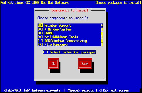 Red Hat Linux (vea la figura fig:inst-pkg-comps). Si selecciona