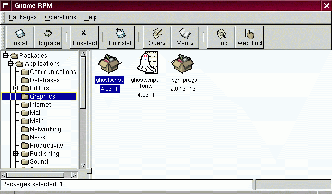 En la barra de estado en la parte inferior de GnoRPM aparecerá el número total de paquetes que haya seleccionado.